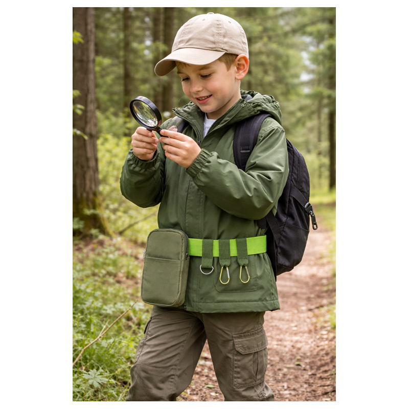 Uanset om dit barn går med metaldetektor, tager på ravjagt, eller blot samler på flotte sten eller fossiler, fortjener de selvfølgelig et sted af placere deres fund mens de er på farten - helt på lige fod med de voksne. Fundtasken kommer inkl. et bælte som kan justeres i længden og er udstyret med 2 karabinhager og 2 metaløjer til ekstra udstyr.