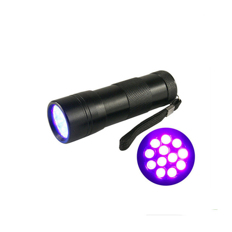 - 1stk Ultraviolet lygte - UV Amber Light 12 dioder (kræver AAA batterier)