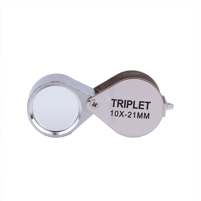 Botaniklup i metal med en forstørrelse på 10x. Botanikluppen er velegnet til at se rav, smykker, sten, blomster, printplader m.m.