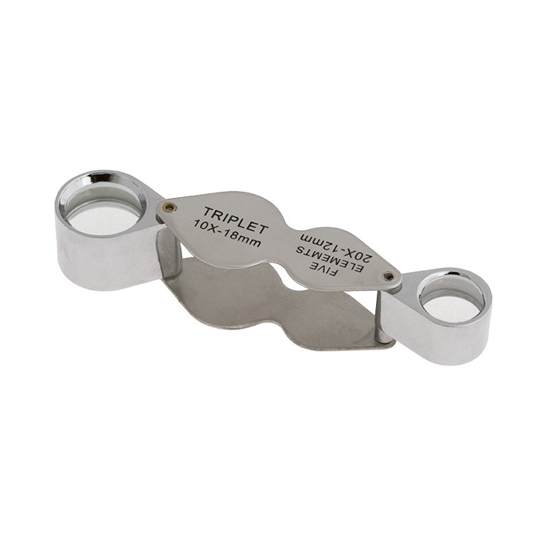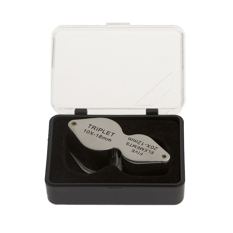 Luppen er akromatisk med triplet linser så man undgår farveforvrængning. Der medfølger et etui til sikker opbevaring samt 3 batterier.