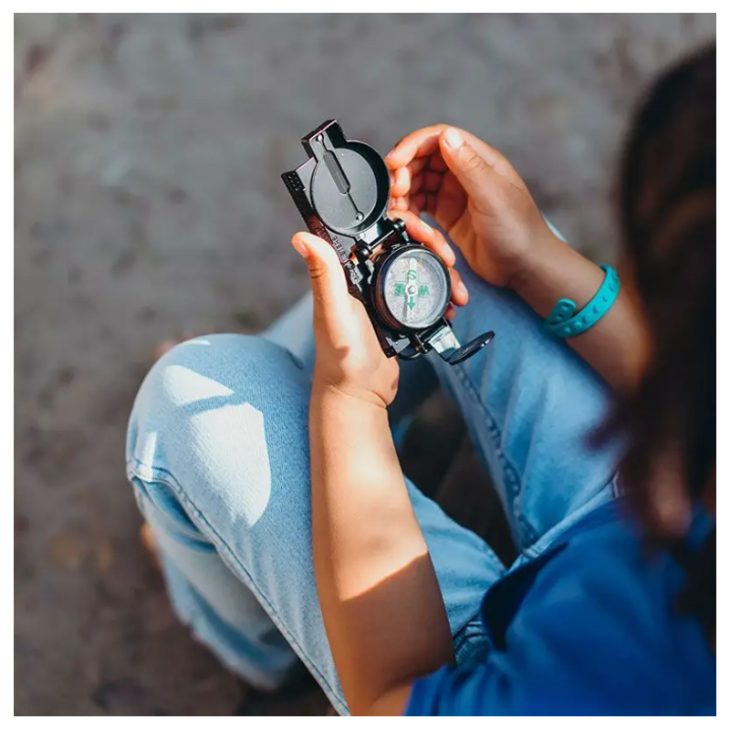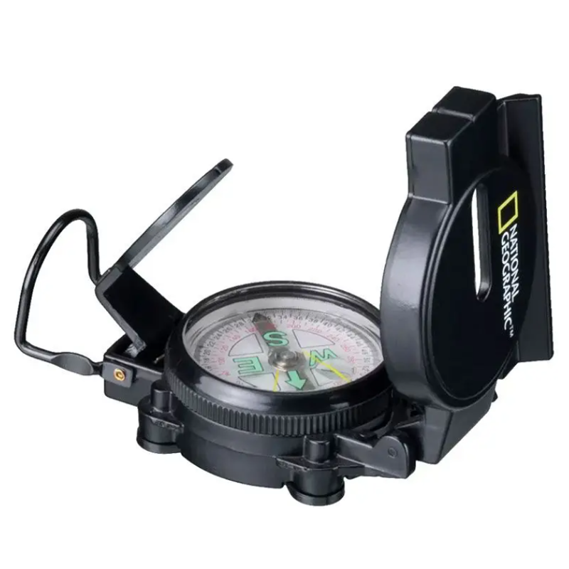 Robust pejlekompas fra NATIONAL GEORAPHIC. Kompasset er lavet i stål og har indbygget centimeter og måleskala. Kompasset har desuden synstråd som giver nøjagtige observation af landmærker.