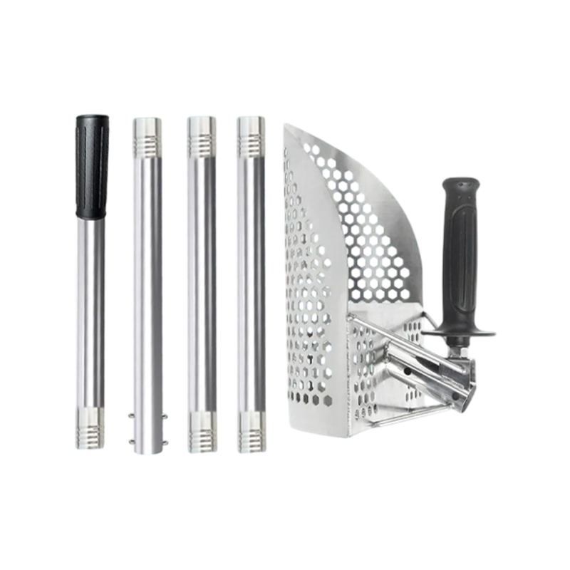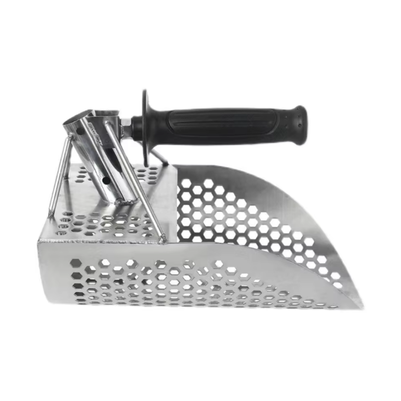 Sand scoop fra Globuz, designet til seriøse metaldetektor-entusiaster, der kræver både styrke og fleksibilitet. Denne model er fremstillet i slidstærkt rustfrit stål, perfekt til enhver søgesituation, uanset om du står i våd strandkant eller tørt sand.