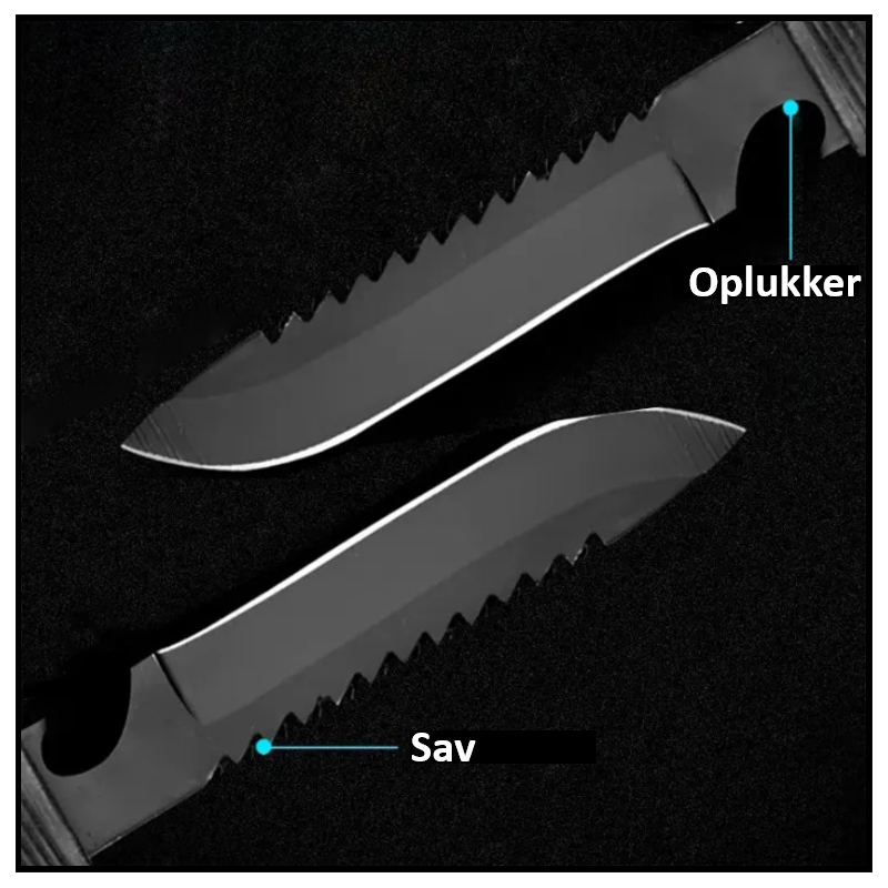 - Kniv, med savblad og oplukker