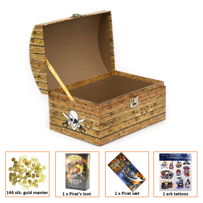 Her får du den ultimative pirat-skattekiste til leg og opbevaring. fyld den med dine egne skatte, slik til skattejagten, legetøj eller de medfølgende mønter. Kun fantasien sætter grænser!