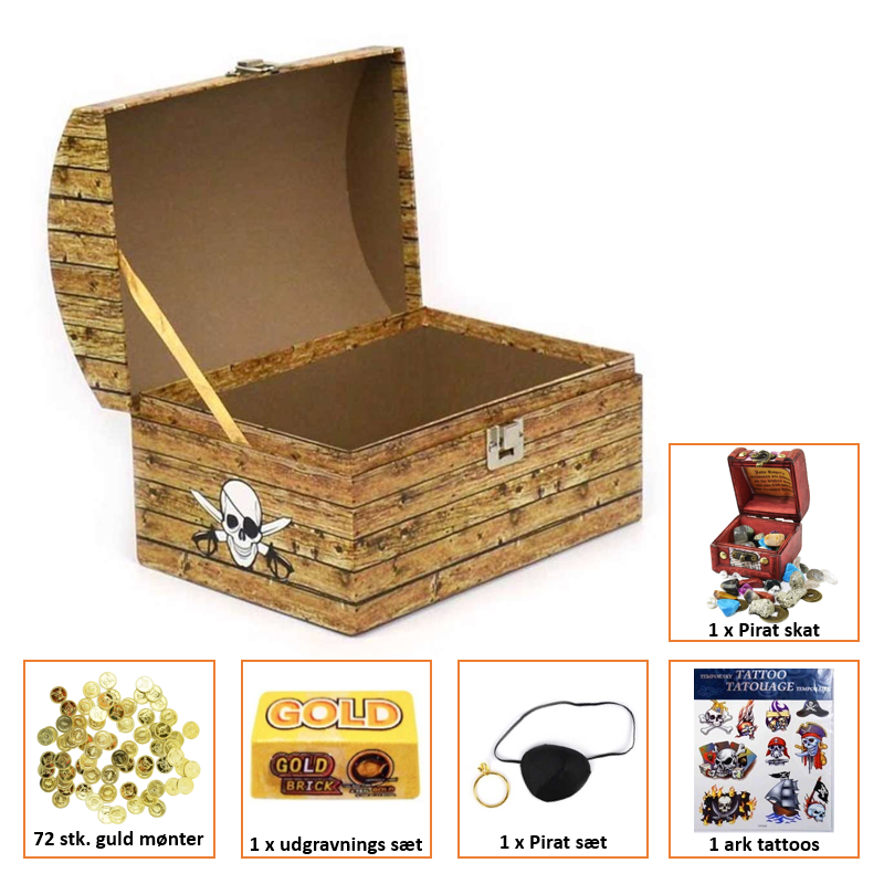 Her får du den ultimative pirat-skattekiste til leg og opbevaring. fyld den med dine egne skatte, slik til skattejagten, legetøj eller de medfølgende mønter. Kun fantasien sætter grænser!