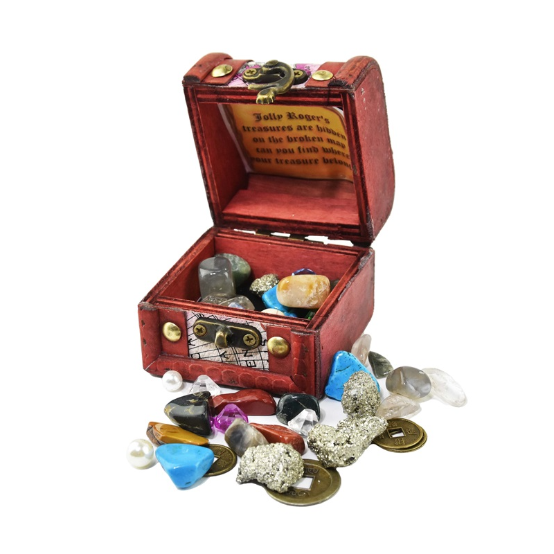 1 x Pirat skattekiste med halvædelsten og piratmønter.